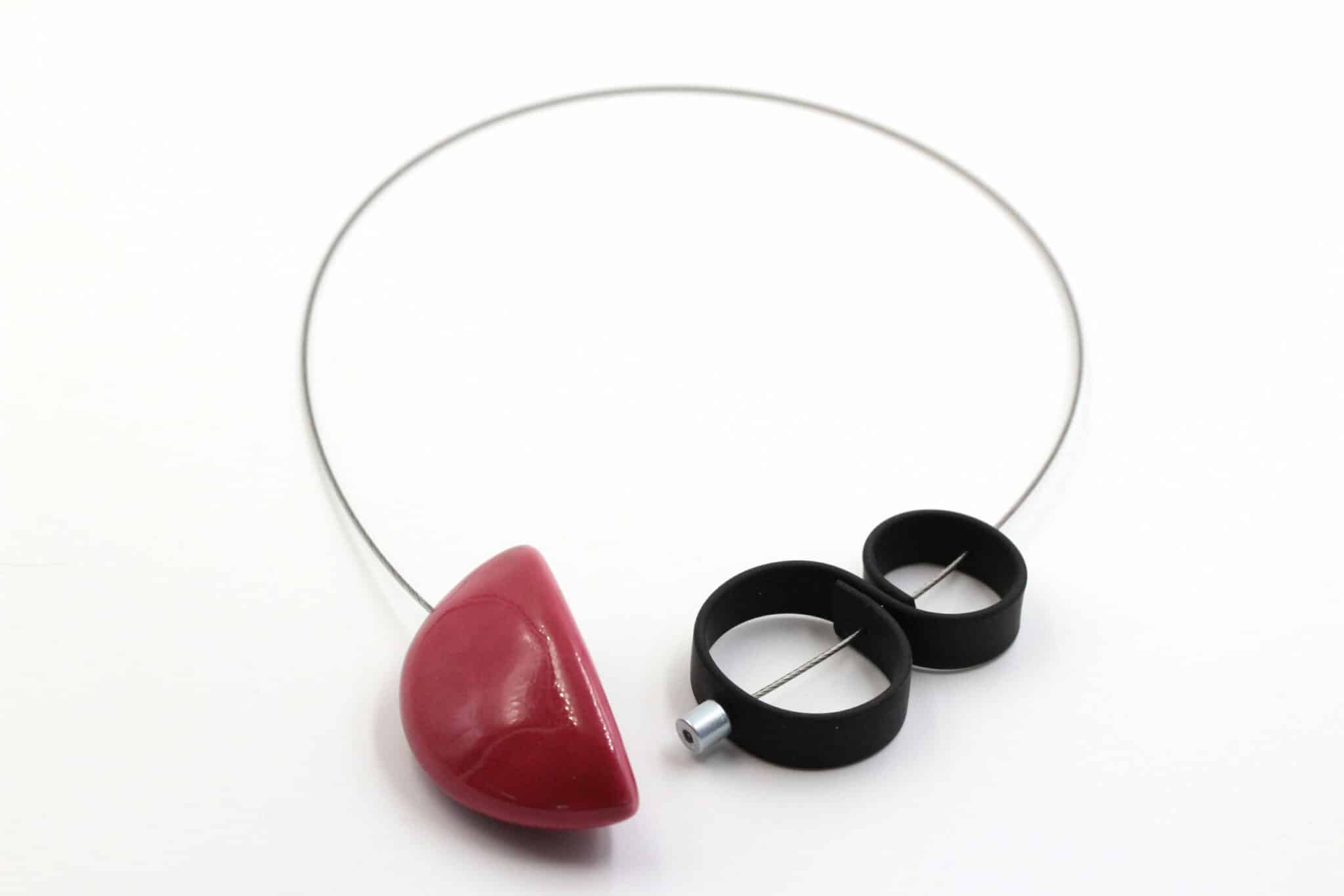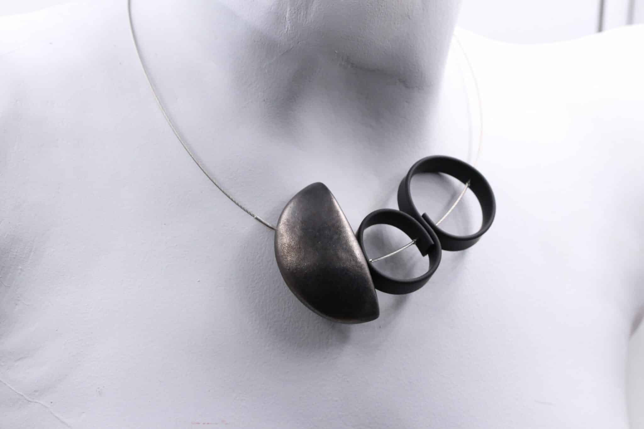 Le Collier Stella en céramique de Renaud Andreani incarne la beauté des constellations avec élégance. Ce bijou unique, assemblé avec un câble en acier, met en valeur la délicatesse d’une demi-lune en céramique, rehaussée de volutes noires en PVC. Avec son fermoir aimanté discret, ce collier est idéal pour les femmes qui aiment l’originalité et l’artisanat.